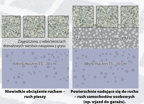 Sopro DM 610, jako podkład pod kostkę brukową może być stosowana w warstwie minimum 5 cm.
