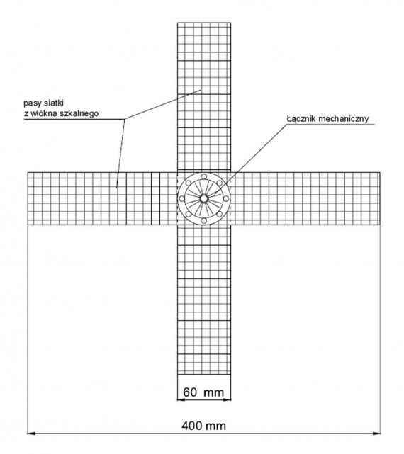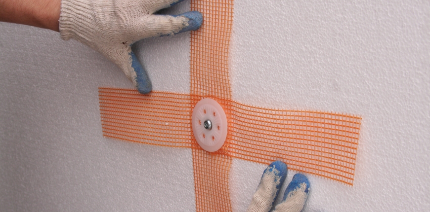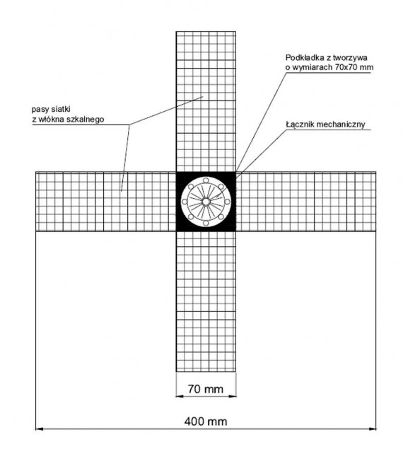 W tym przypadku stosowane są pasma siatki o szerokości nie mniejszej niż 70 mm i długości nie mniejszej niż 400 mm, które powinny być przyklejone do styropianu zaprawą klejącą.