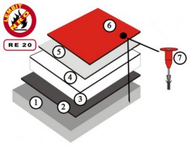 odporność ogniowa warstwowego przekrycia dachowego REI 15, RE 20, mocowanie mechaniczne na izolacji termicznej z płyt styropianowych.
