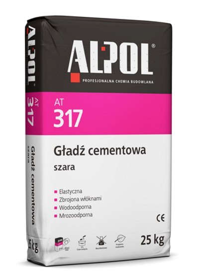 Gładzie cementowe ALPOL AT 317 (szara) i AT 318 (biała) są produktami odpornymi na działanie wilgoci i mrozu, dlatego też można je stosować zarówno wewnątrz pomieszczeń jak i na zewnątrz. Przeznaczone są przede wszystkim do wykonania gładzi na dużych powierzchniach betonowych i żelbetowych. Mogą być stosowane również do wypełniania szczelin porów, niewielkich rys i uszkodzeń na powierzchniach betonowych, tynków cementowych i cementowo-wapiennych oraz do szpachlowania glifów. W zależności od rodzaju wykończenia gładzonych powierzchni, ich końcowa obróbka może być wykonana "na mokro" za pomocą pacy stalowej lub też "na sucho", po stwardnieniu gładzi, za pomocą papieru ściernego. Gładzie cementowe stanowią bardzo dobry podkład pod malowanie praktycznie każdym rodzajem farby.