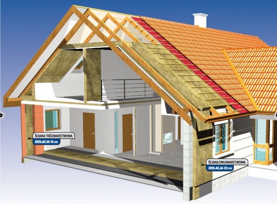 z wełny mineralnej chroni wiatro- i paroizolacja, z zewnątrz