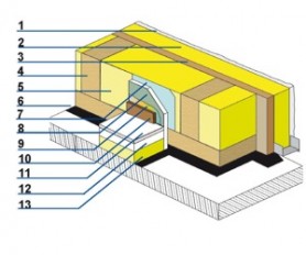 mineralna gr. 15 cm, 6 - papa, 7 - folia paroizolacyjna, 8 - płyta