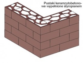 wypełnione styropianem. Z keramzytobetonu można budować ściany